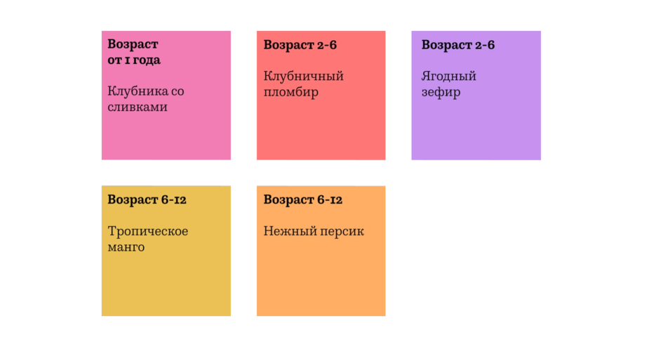 Отдельным уровнем задачи стала разработка персонажей для трех возрастных категорий: от 1 года, от 2 до 6 лет и от 6 до 12 лет. Для каждой группы мы адаптировали пропорции, характер и подачу, а также проработали вариативность: позы, мимику, цвета и дополнительные элементы одежды, сохранив при этом целостность визуальной системы.