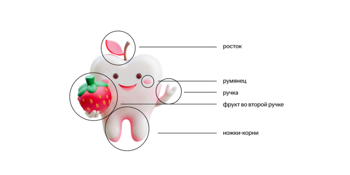 «Каждый проект — это всегда что-то новое: свой стиль, позиционирование бренда, цели и возрастная аудитория, и все это важно понять на этапе брифа. А также — общую концепцию и направление. Мне хотелось создать доброго, мультяшного персонажа-зубика, который вызывает улыбку и легко находит контакт с детьми, чтобы через этот образ выполнить сразу две задачи: сделать уход за зубами увлекательным для ребенка и заставить его работать на продажи и маркетинг бренда. Новой задачей для меня стало создать одного персонажа сразу для трёх возрастных групп, сохранив при этом общий визуальный стиль.