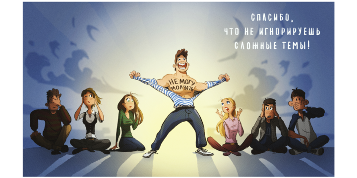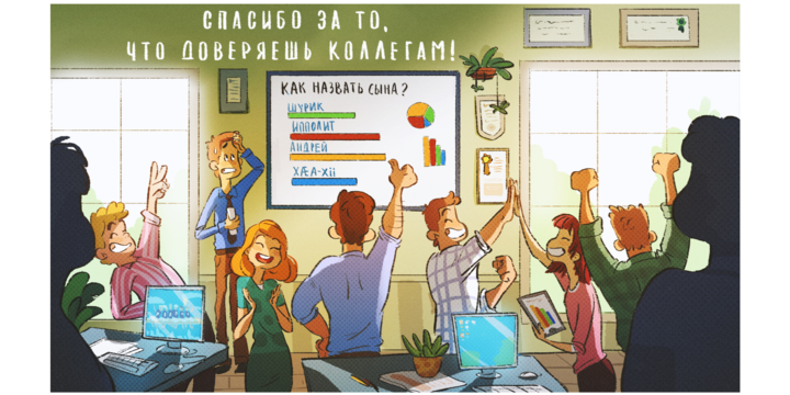 С самого начала был выбран юмористический, но глубокий, трогательный посыл. Для точного формулирования фраз мы пригласили копирайтера, Сашу Нуйкину.