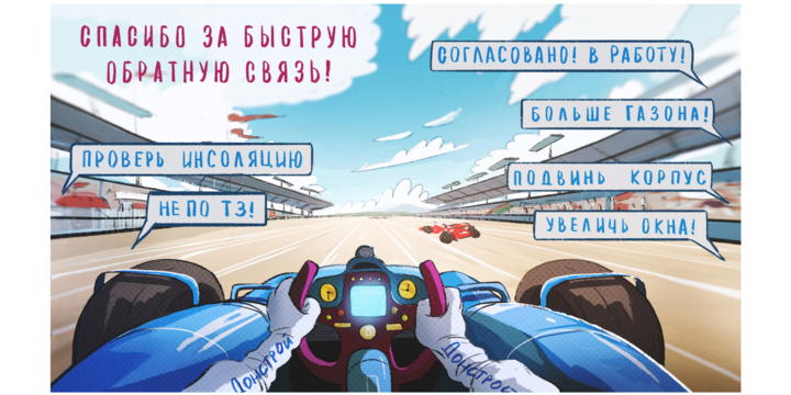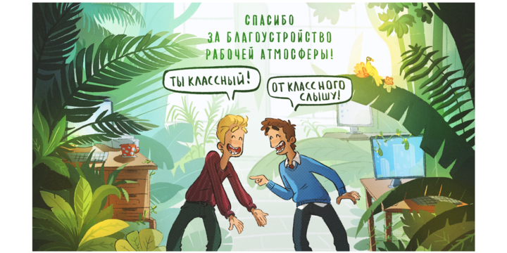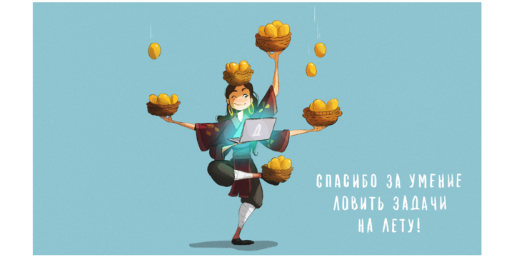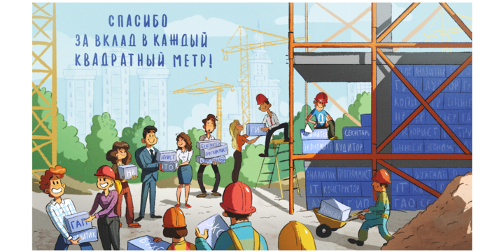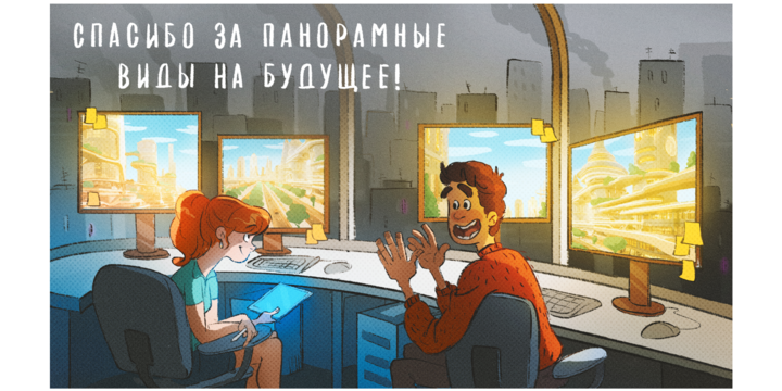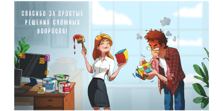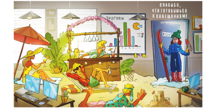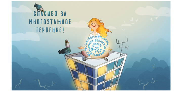 «Заказчик очень помог на самом первом этапе работы. У нас был большой созвон на 1,5 часа, где мы прошлись по тематике для каждого скринсейвера и клиент подробно рассказал, что именно отражает этот посыл с точки зрения особенностей работы в компании. Такое качественное погружение в контекст помогло быстро придумать подходящие идеи. Свобода в определенных и логичных рамках позволила нам довольно быстро согласовать сюжеты и обойтись небольшим количеством правок».