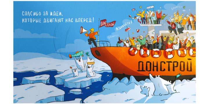 В конце 2023 года, в преддверии своего тридцатилетия, к нам пришёл застройщик «Донстрой». Компания хотела реализовать одну из праздничных идей — создать для рабочего стола 15 скринсейверов, отражающих внутренние ценности и благодарности сотрудникам.