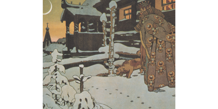 Иван Билибин учился у Рериха, Ажбе и Репина. Затем почти десять лет вел класс графики в школе Императорского общества поощрения художеств. Среди современников он считался одним из главных знатоков русской старины. В 1904 году вышел номер журнала «Мир искусства», который Билибин самостоятельно оформил, проиллюстрировал и написал в него статью «Народное творчество Севера».