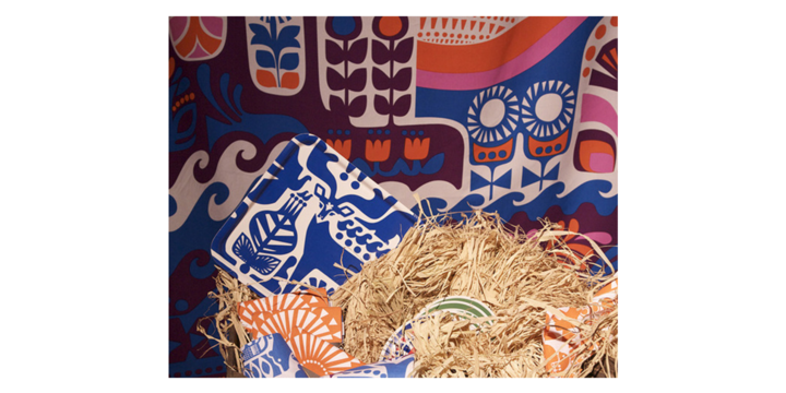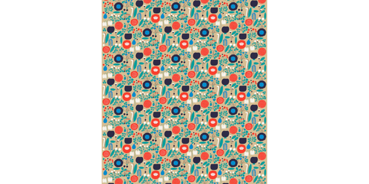 Метсола увлеклась паттернами в детстве, ими были заполнены все ее школьные тетради. Спирали и точки соединялись причудливым образом, превращаясь в звезды, которые рассыпались в осколки и плыли волнами. Ей нравилось не просто рисовать узоры, а соединять их в общую смысловую канву. Это и сегодня главная отличительная черта паттернов Метсолы. Она скрещивает в едином пространстве изящный графический гербарий с грубыми примитивными формами и цветовыми пятнами. Нечто вполне осмысленное с чем-то очень простым. И здесь рождается нарратив. Это уже не просто метр ткани с повторяющимся узором, а целый сказ. «Я избегаю паттернов ради паттернов. Ни один рисунок не должен оставить зрителя без эмоций», — говорит Метсола.