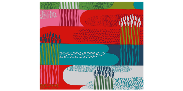 Там, где кончаются самые смелые эксперименты Ишимото, начинается еще более фантастический мир Метсолы. Стократ смелее, ярче, безумнее — без всякой точки опоры, без правил и привычного графического инвентаря. Иллюстратор Айно-Майя Метсола (Aino-Maija Metsola) — финка и по прописке, и по происхождению. В 2006 году она выиграла открытый конкурс Marimekko со своим паттерном Mokki («Бревенчатый домик»), а со временем стала в компании ведущим дизайнером-графиком по текстилю.