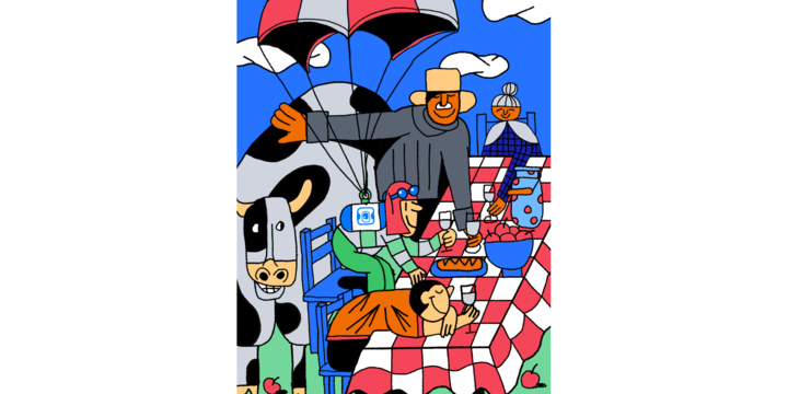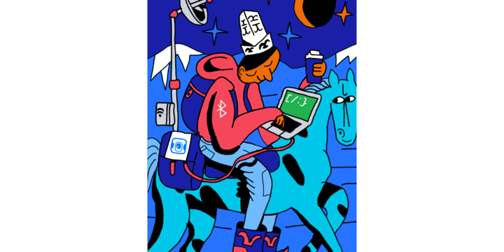 Кочевников нового времени нарисовал Тим Яржомбек. Главное, что связь ловит, пока исследуешь Ближний Восток. Кстати, семейные посиделки тоже нарисованы Тимом!